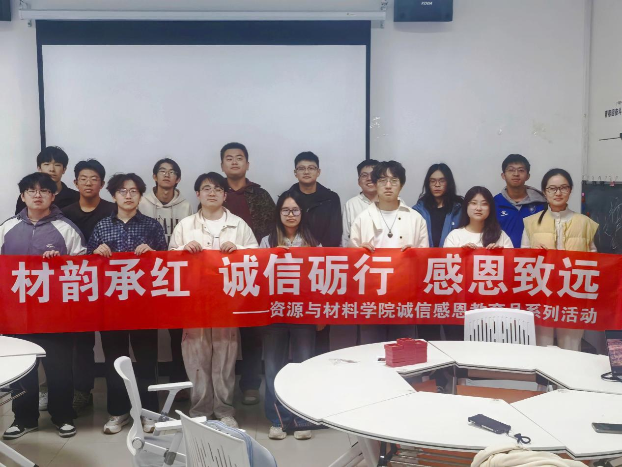 为积极响应学生工作处开展的2026年“忆峥嵘·守诚信·感党恩”大学生诚信感恩教育月活动,深入推进诚信感恩教育,传承红色基因,引导学生在光影中感悟先辈精神、在思考中明晰责任担当,4月17日晚,资源与材料学院在学校“一站式”学生社区115教室举办“光影铸魂·材怀家国”红色观影与主题讨论会。